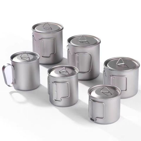 Taza de aleación de titanio puro para acampar al aire libre, taza de titanio plegable portátil para acampar con tapa