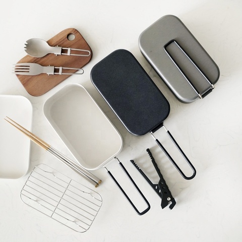 Caja de comida para cocinar de viaje para acampar, caja Bento a prueba de fugas y para mantener la comida fresca, fiambrera de aluminio con asa